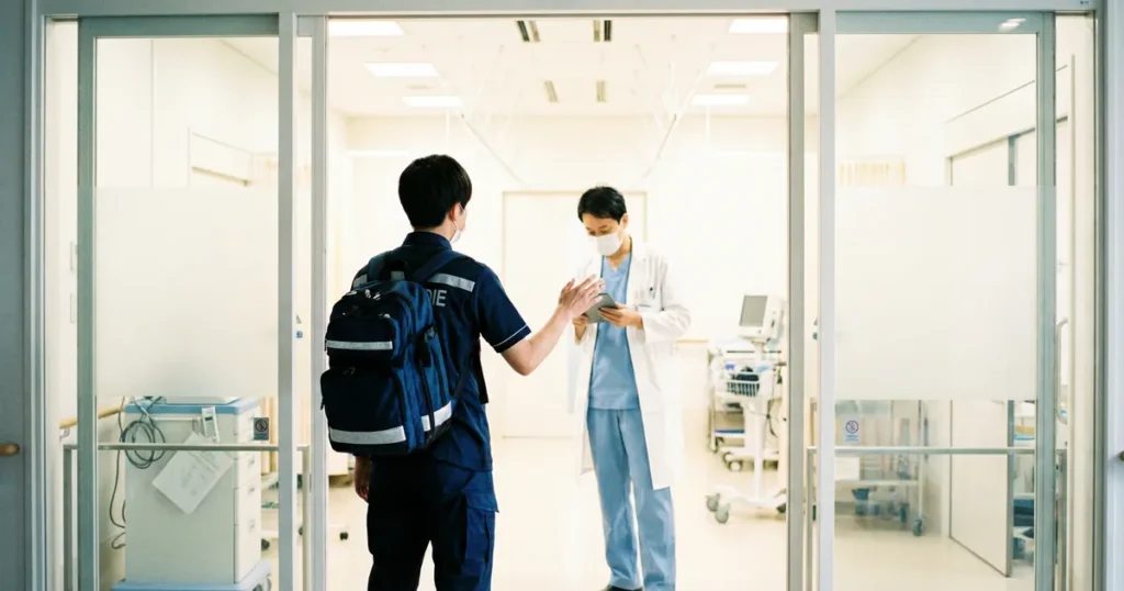 また、指示を待つ間も、救急救命士はその場でできる処置を継続し、搬送先の医療機関へ確実につなげる役割を果たします。