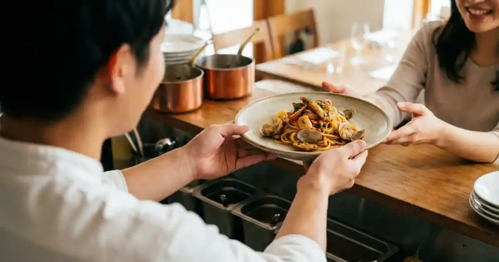 イタリアンシェフは、厨房内での調理だけでなく、オープンキッチンなどを通じて顧客とコミュニケーションを図ることも重要な役割です。